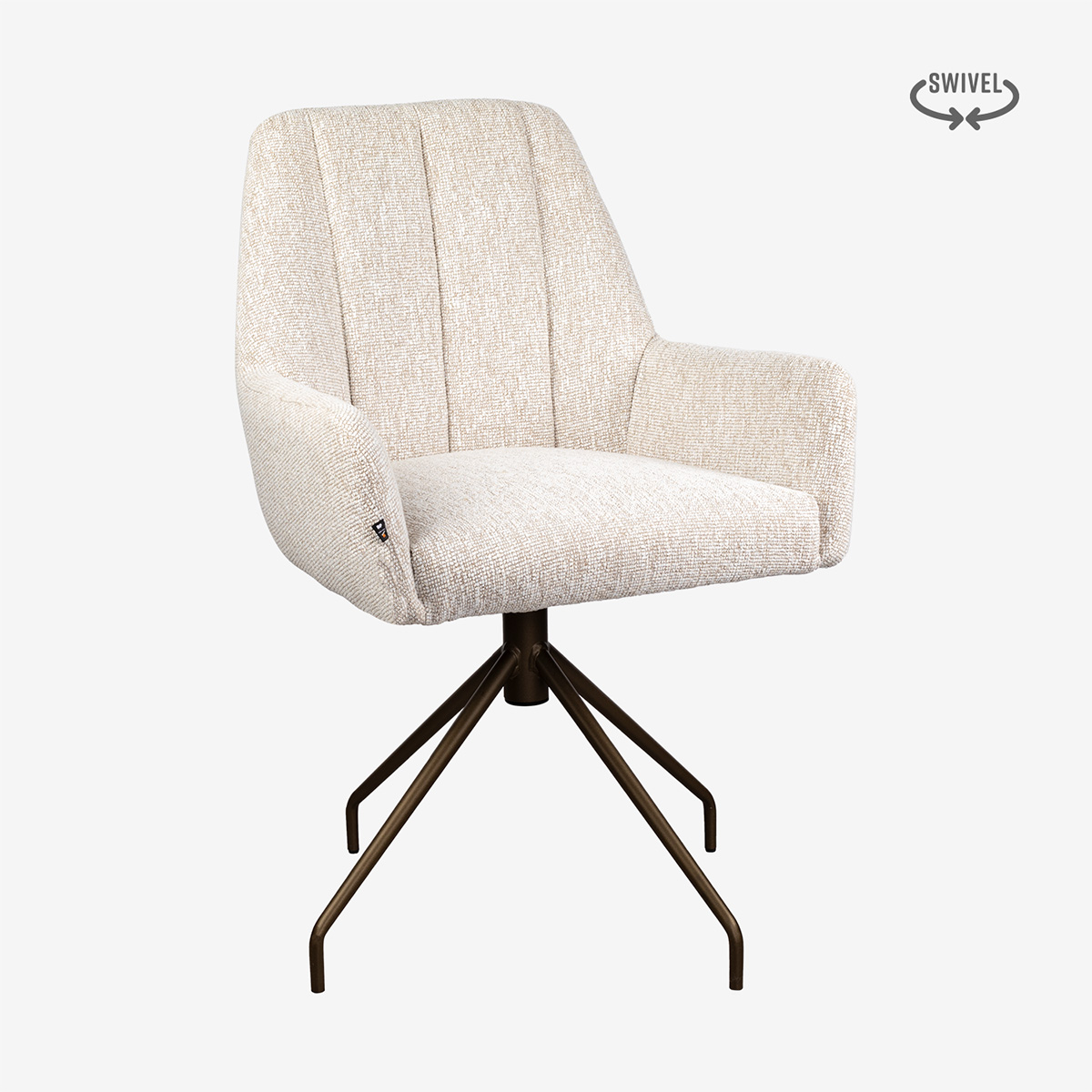 The Cato chair in Lodge 110 with leg type 1 metal platinum. This model has 4 different bases to choose from.